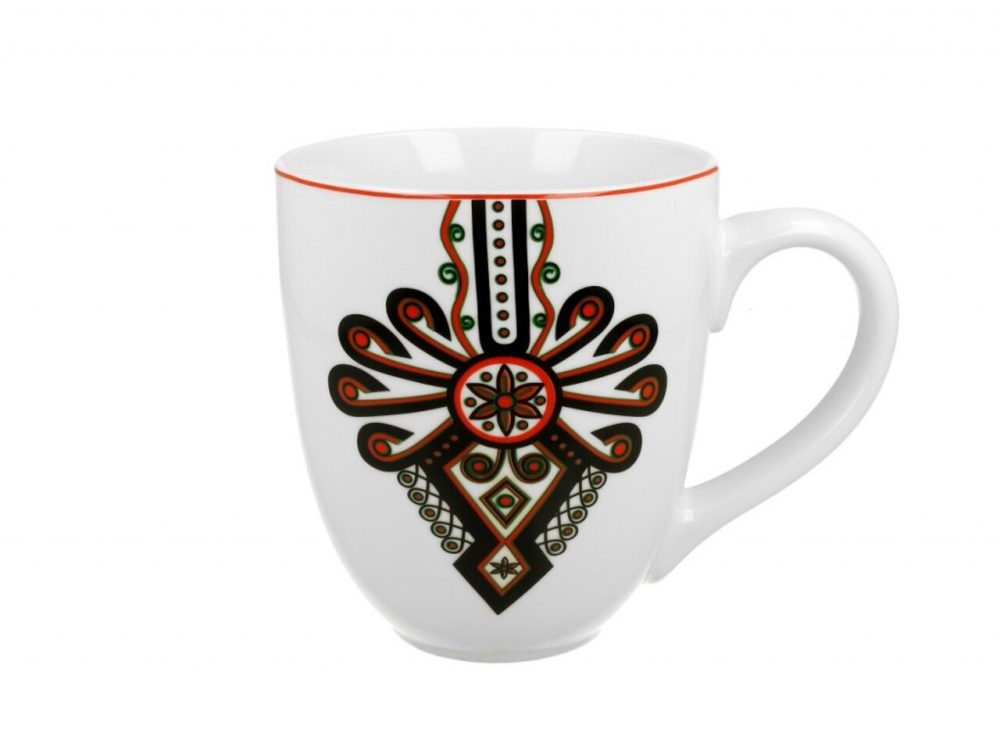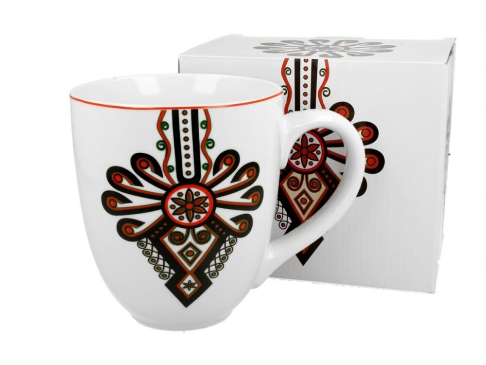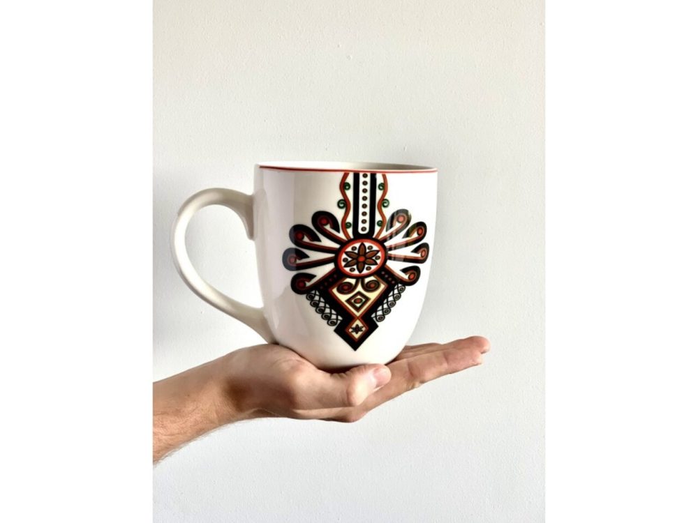 - Design multicolor – Cu un ornament rural, această cană aduce un aer tradițional și vibrant, perfectă pentru a fi utilizată în cadrul întâlnirilor cu familia sau prietenii.
