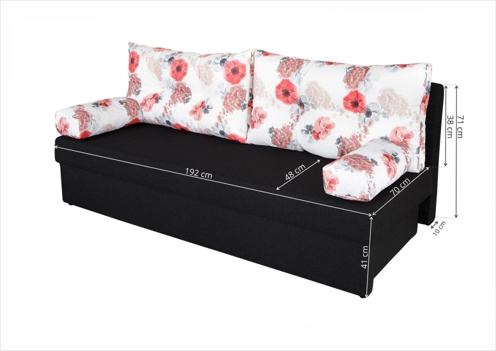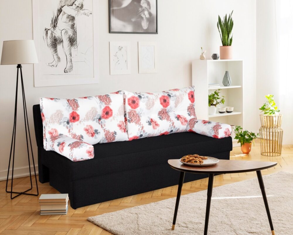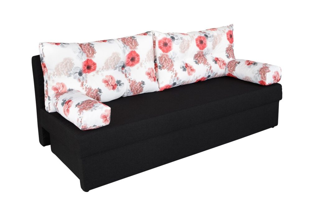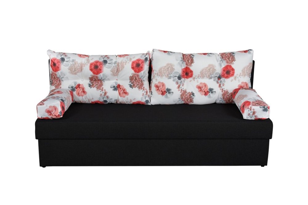 Canapea extensibila Alfi Anthracite 192x80x77 cm cu lada de depozitare si perne imprimeu Roses Flower, confortabila si moderna