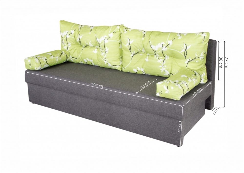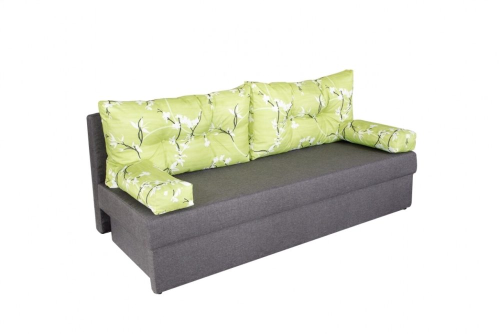 Canapea extensibila Alfi Grey 192x80x77 cm cu lada de depozitare si perne Jasmine Flower, confortabila si eleganta pentru living