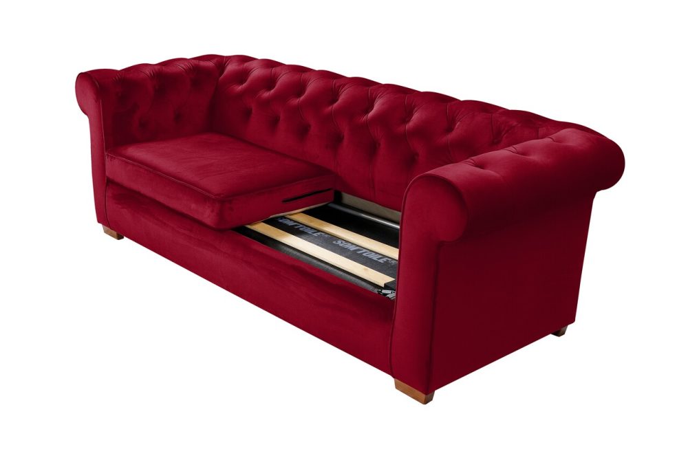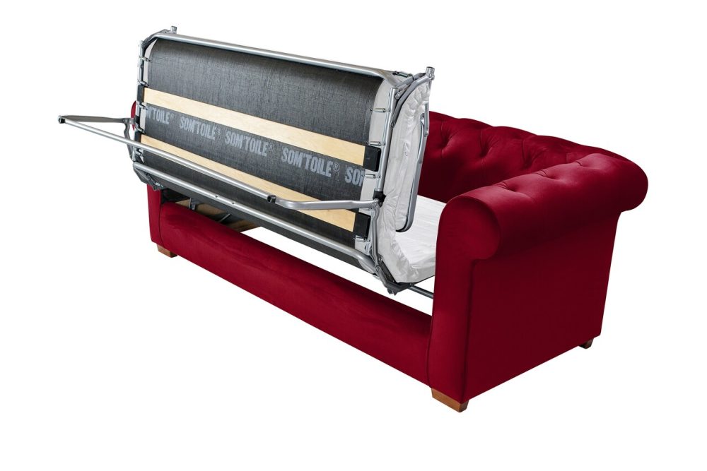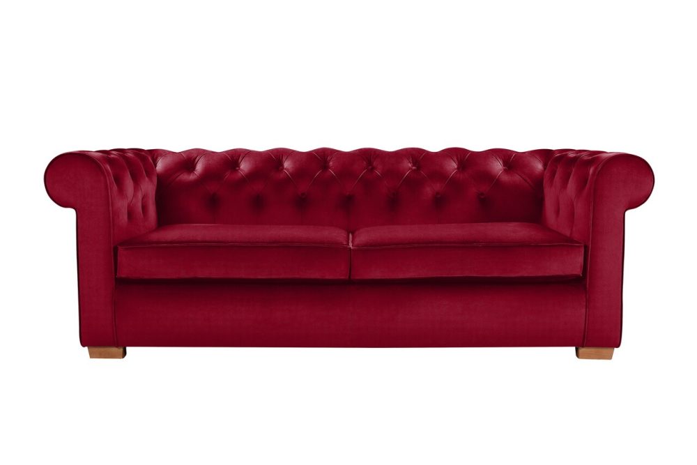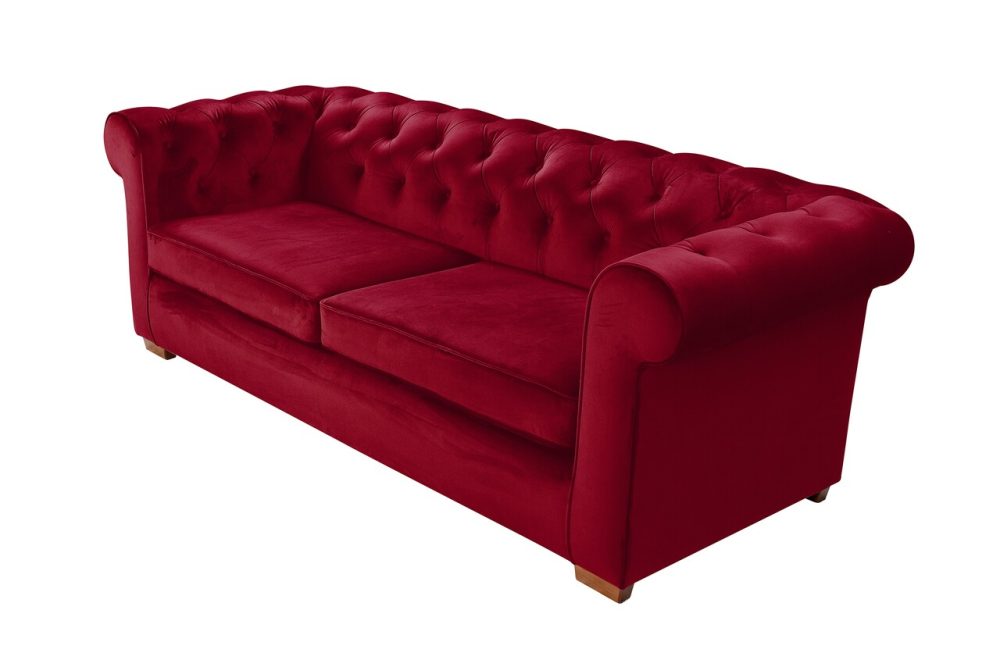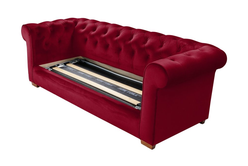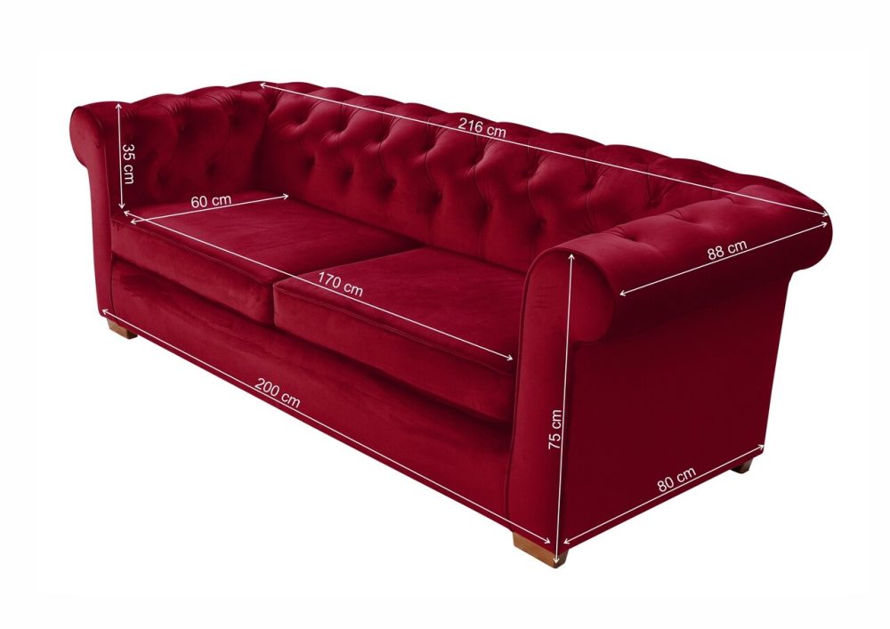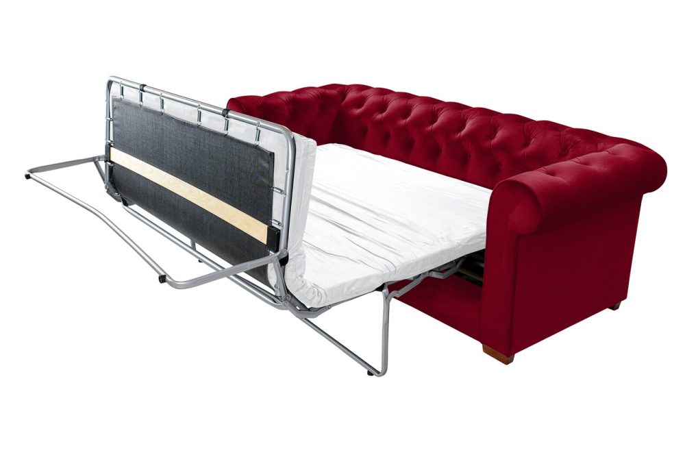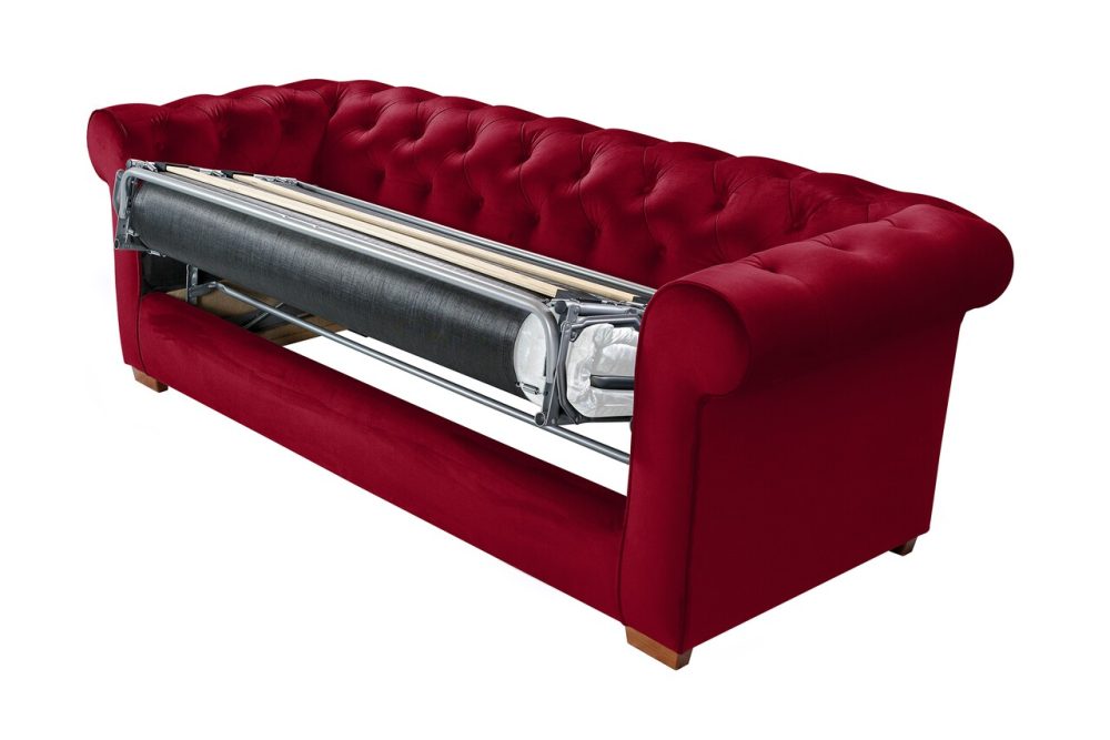Canapea extensibila Oxford Chesterfield 3 locuri 88x216x75 cm Red, material textil, design elegant si confortabil