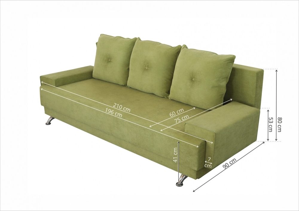 - Înălțime: 86 cm (cu perne), 78 cm (fără perne), 41 cm (înălțime șezut)