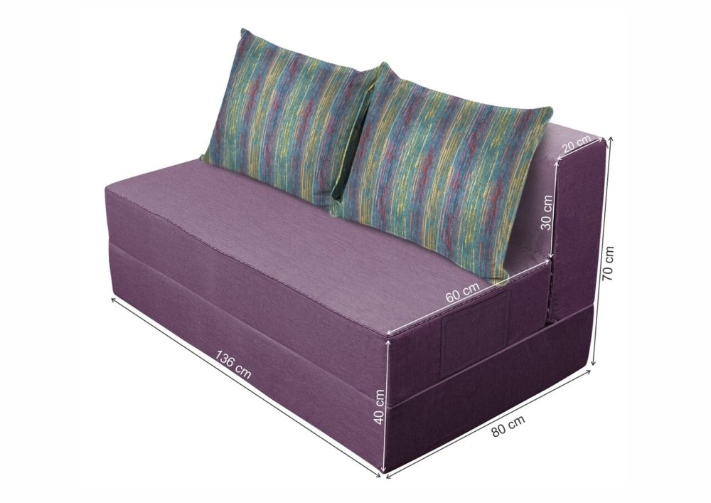 Canapea extensibila Urban Living 136×80 cm Purple cu husa textila rezistenta, multifunctionala si economica de spatiu