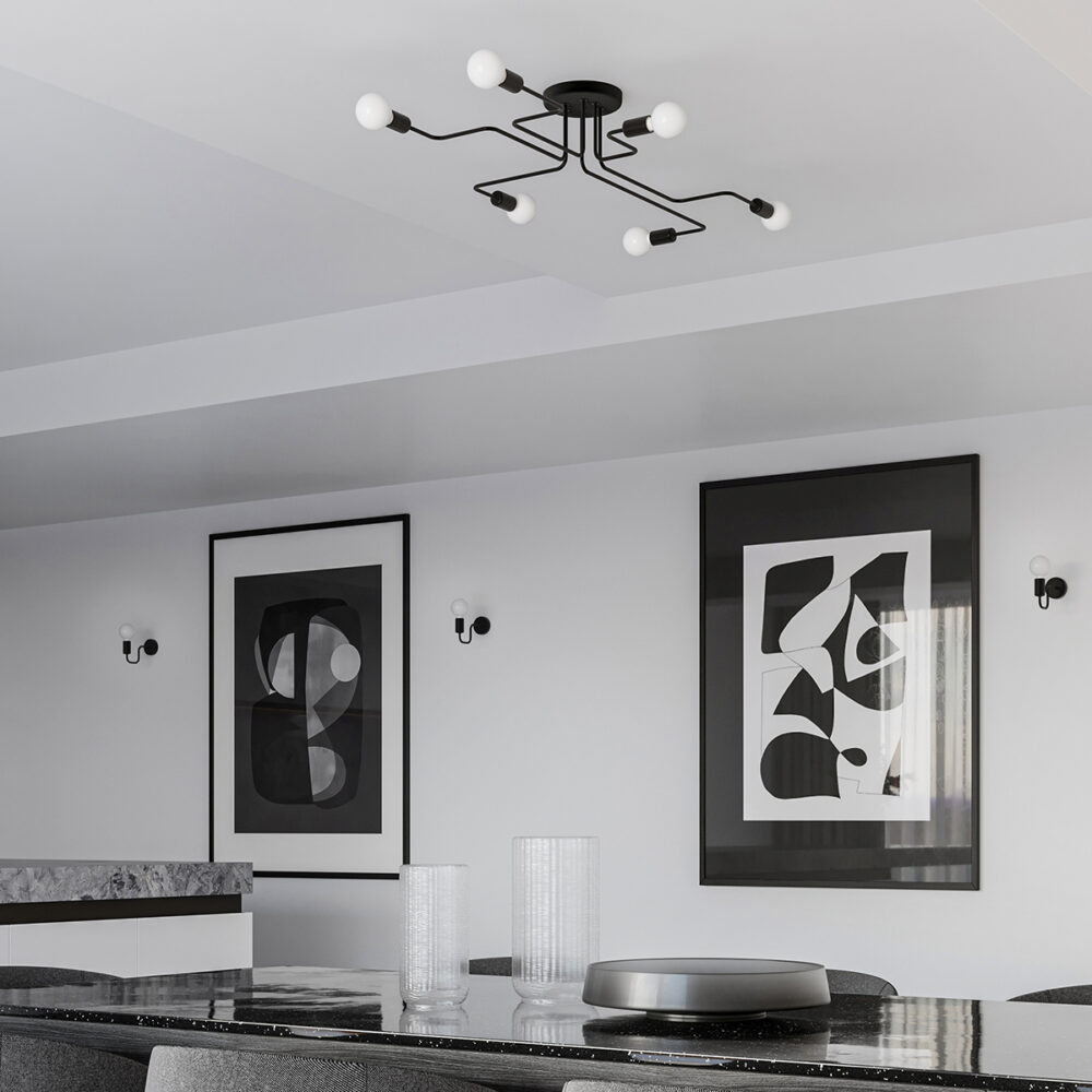 Lampa VECTOR impresionează prin simetrie și minimalismul ordonat. Brațele cu formă precisă și lipsa nuanțelor sunt o combinație interesantă și atrăgătoare, care, pe lângă utilizarea practică, poate și decora cu succes un interior.