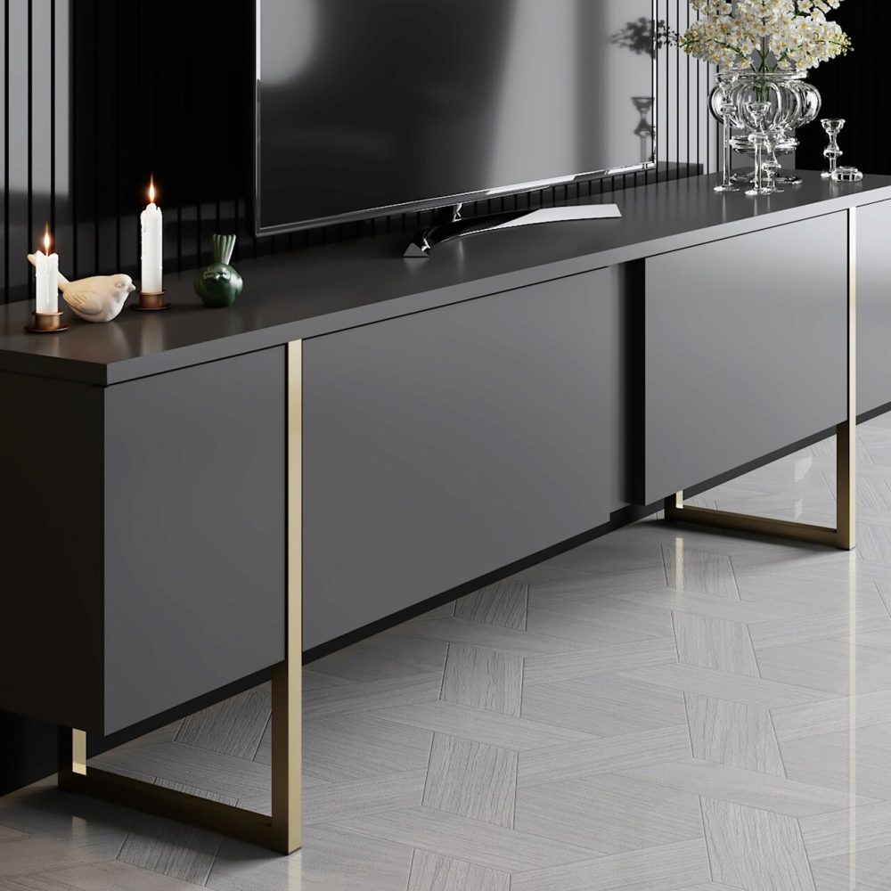 Comoda TV Bexley Luxe 180x30x50 cm Antracit Aur PAL cu Picioare Metalice