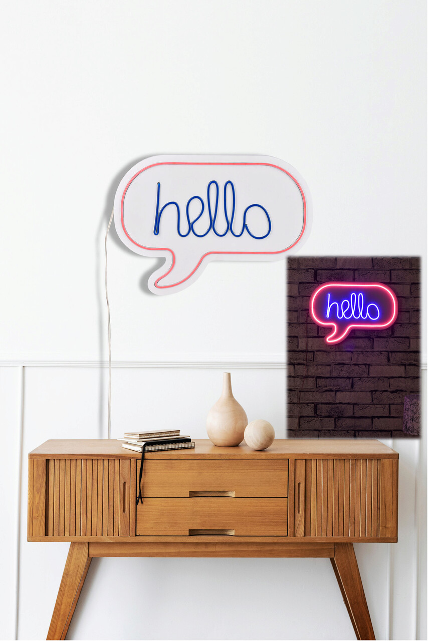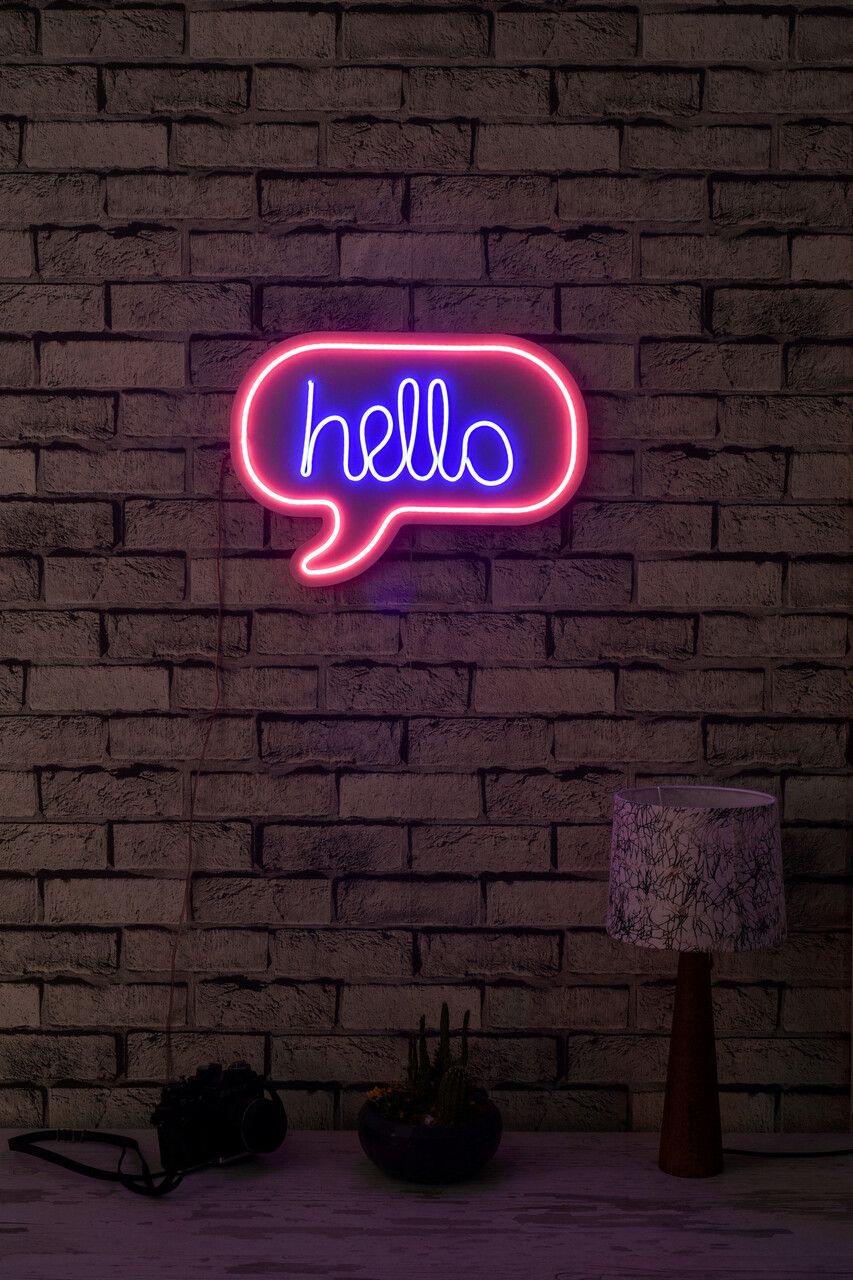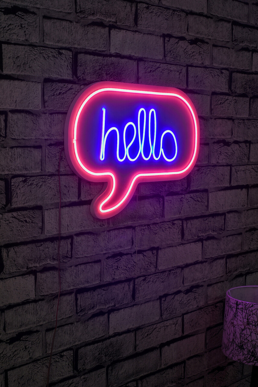 Decoratiune luminoasa LED Hello Neon flexibil DC 12V Roz Albastru 42x31x2cm rezistenta la apa IP67 spuma PVC