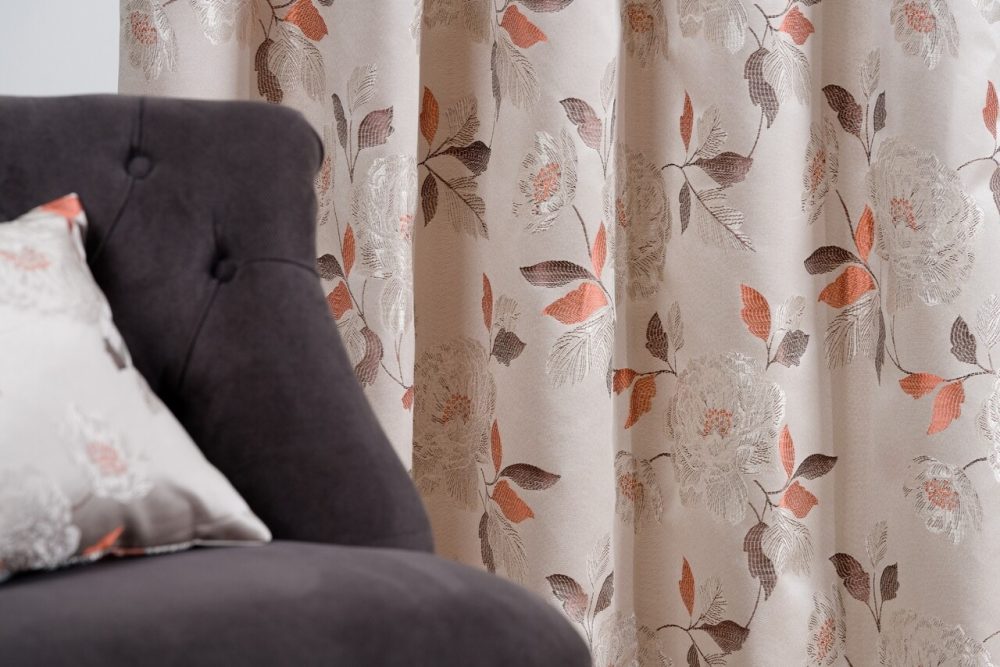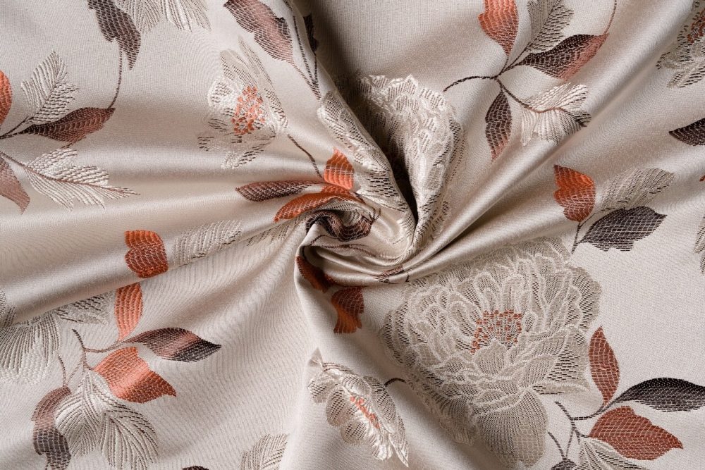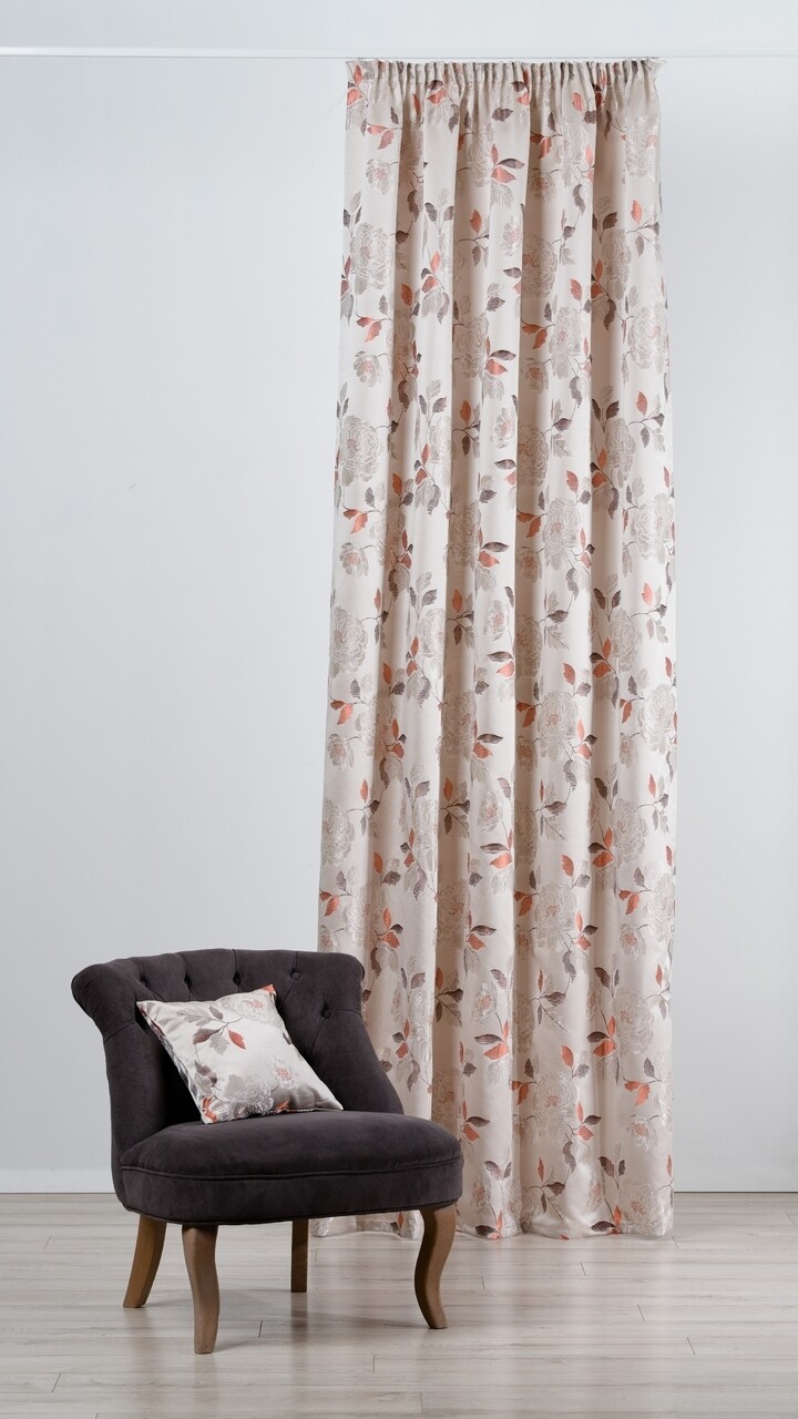 Draperie Mendola Fidia 140×260 cm poliester crem model floral caramiziu pentru sufragerie sau dormitor