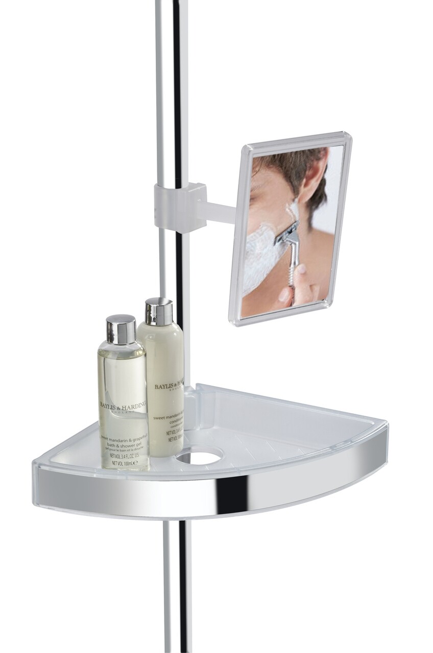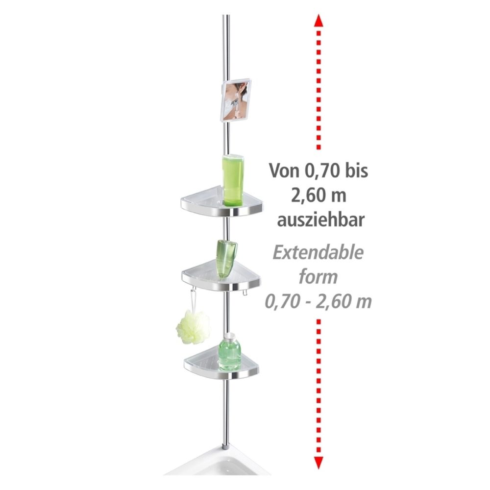 Etajera de colt extensibila pentru baie Wenko Premium Shiny aluminiu 27.5 x 70-260 x 20 cm cu 3 rafturi reglabile si oglinda rotativa