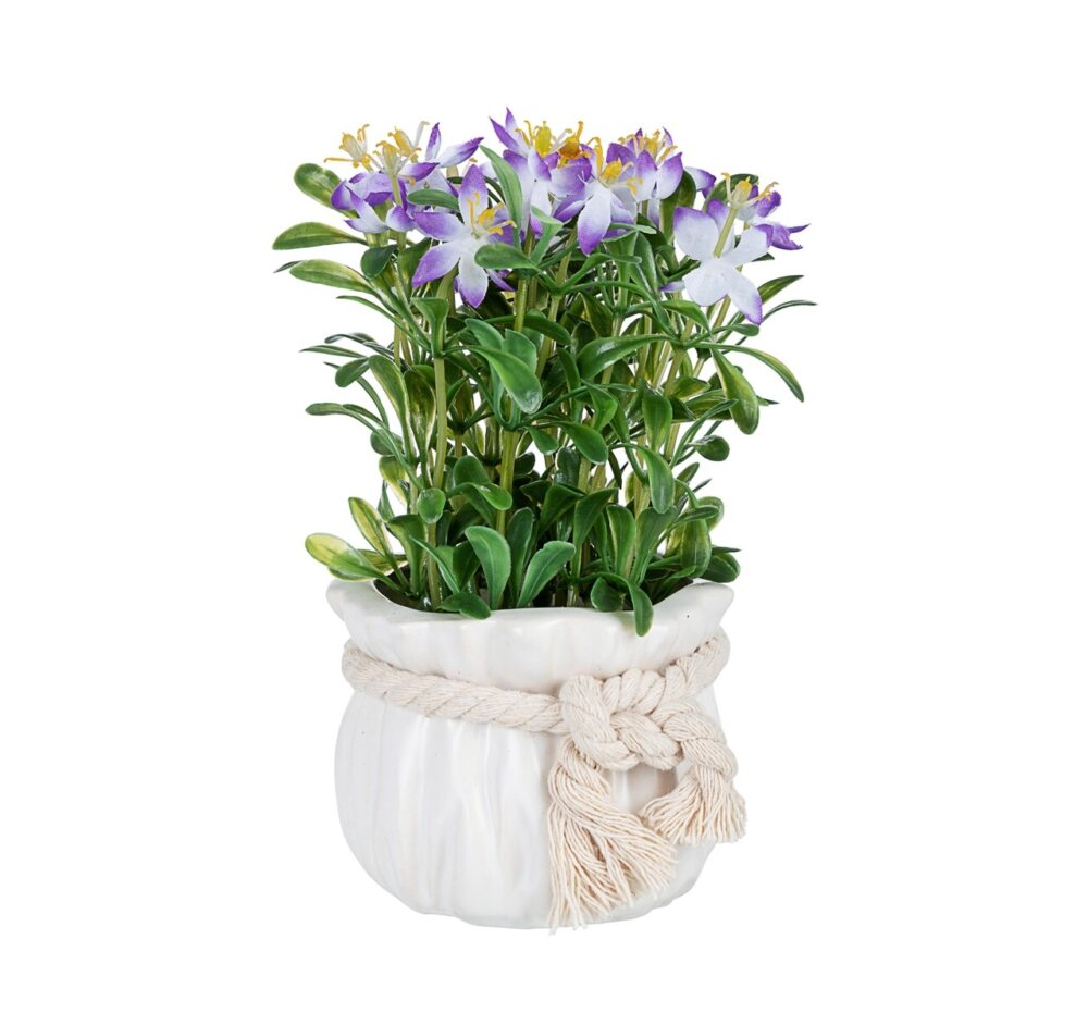 Floare artificiala Adelaida mov Ø8.5×17 cm din poliester si plastic cu ghiveci ceramic Bizzotto