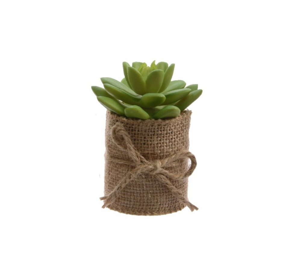 Floare artificiala Succulent v2 verde in ghiveci 5x5x12 cm din plastic si iuta Decoris