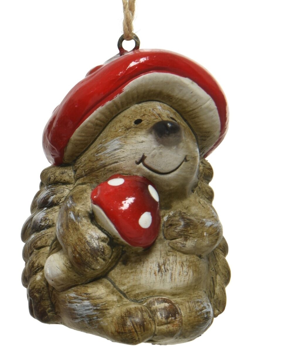 Glob decorativ jeleu arici cu ciupercă Decoris, teracotă multicolor, 6x6x7.5 cm