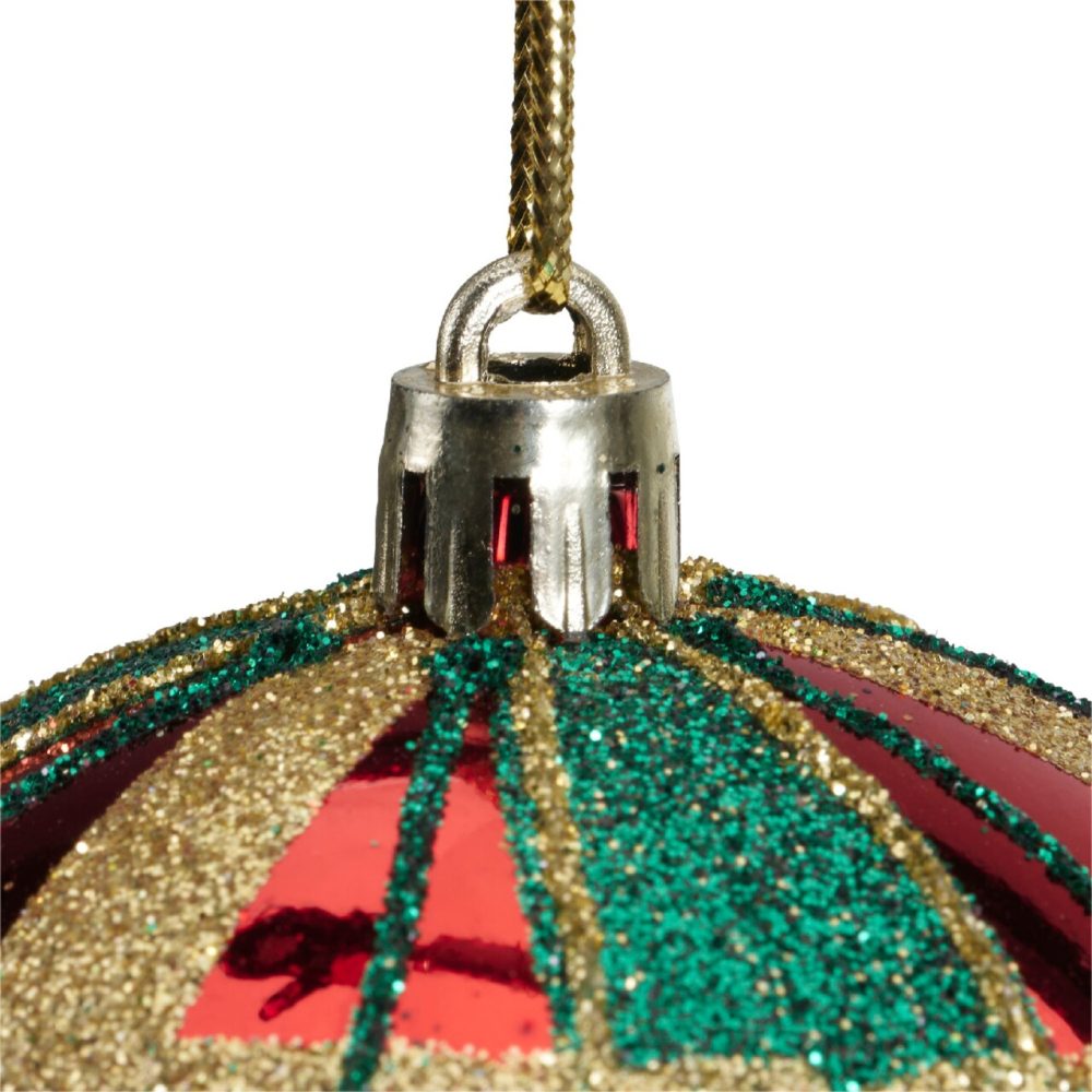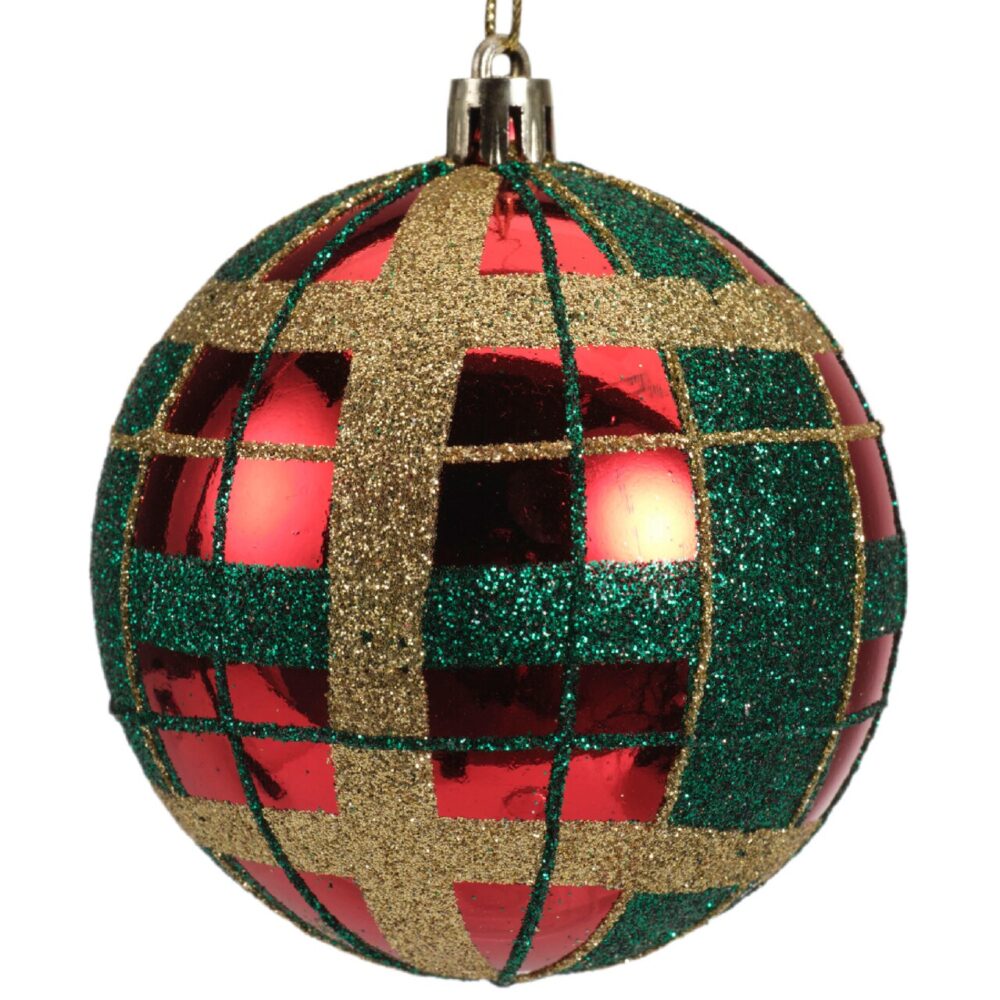 Glob Plaid rosu lucios 8 cm plastic Decoris pentru decoratiuni de Craciun