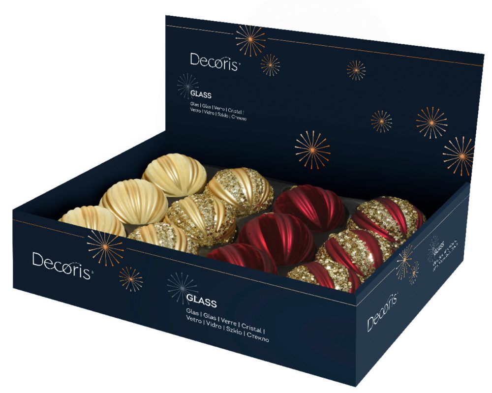 Îmbogățiți-vă bradul de Crăciun cu eleganța rafinată a globului Red with Sequins de la Decoris. Acest glob superb, cu un diametru de Ø8 cm, este realizat din sticlă de înaltă calitate și îmbrăcat în o nuanță vibrantă de roșu, adăugând o notă de strălucire și festivitate oricărei decorațiuni de sărbători.