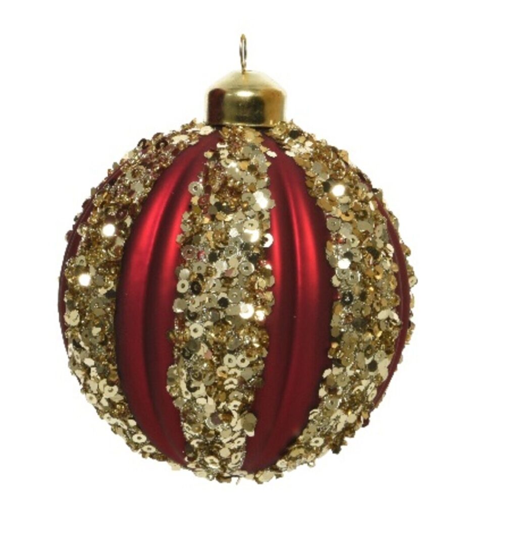 Glob Red with Sequins – Decoris, Ø8 cm, Sticlă, Roșu