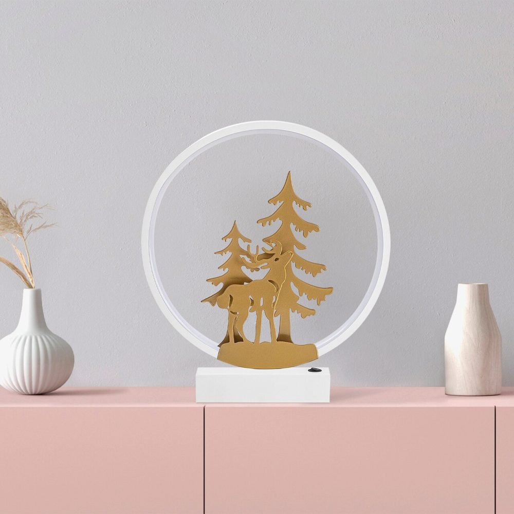 Lampa de masa Shadow 526SHD1146 Metal Alb/Auriu 30 cm Diametru IP44 Buton Pornire Oprire