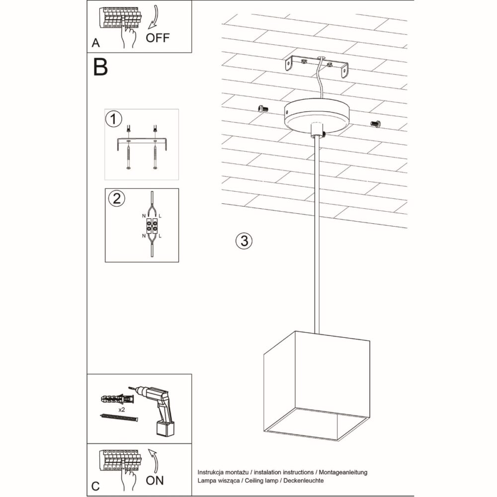 Puteți monta lampa suspendată QUAD pe tavan rapid și fără efort. Instalarea practică înseamnă că durează doar câteva minute pentru a te bucura de strălucirea frumoasă în întreaga cameră.