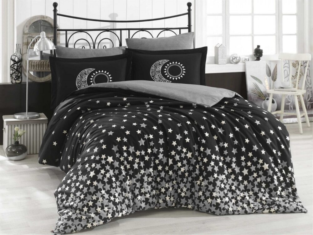 Lenjerie de Pat pentru O Persoană – 3 Piese, 100% Bumbac Poplin, Hobby, Star’s, Alb/Negru