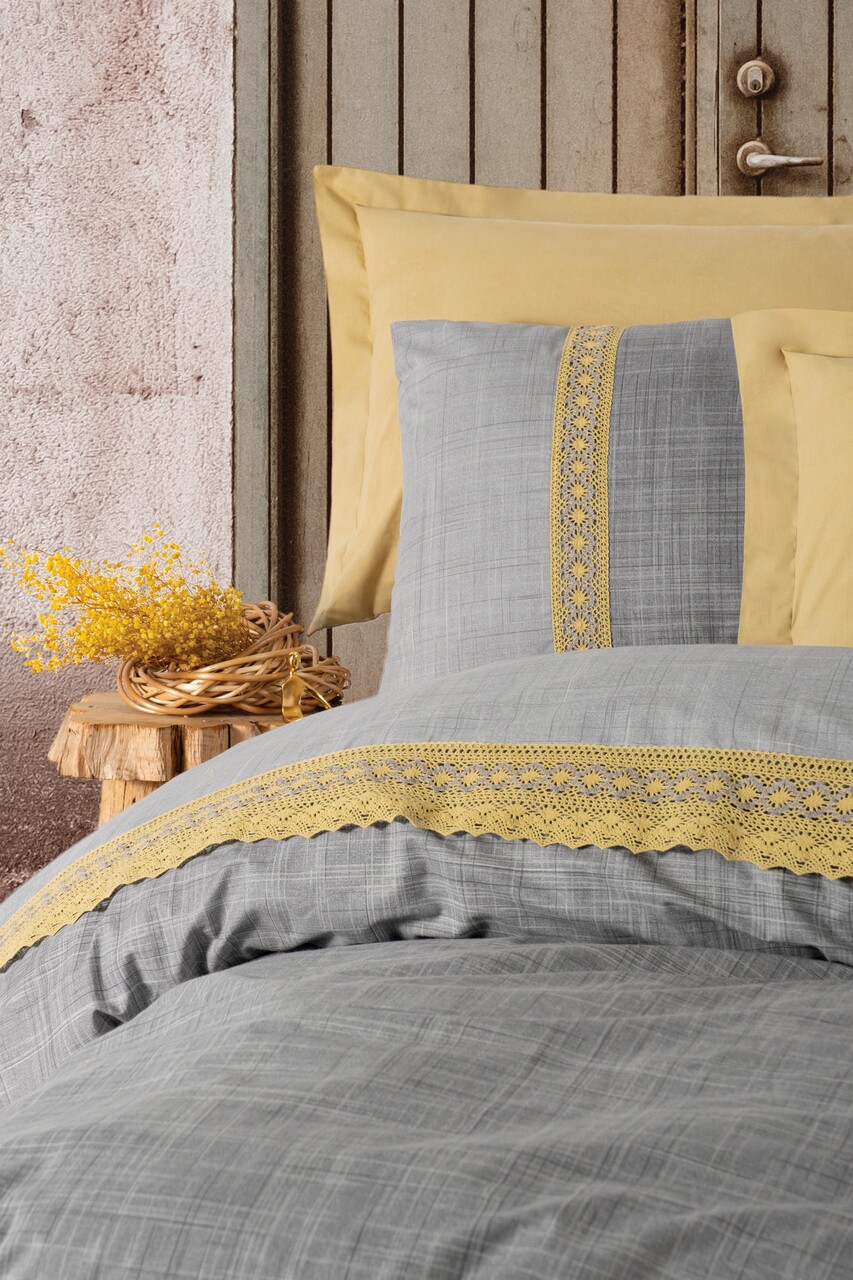 Lenjeria Hazel se distinge prin nuanța sa de galben mustar, care aduce o notă de căldură și luminozitate în orice cameră. Detaliile brodate adaugă un element de sofisticare, transformând această lenjerie într-o alegere ideală pentru cei care doresc să îmbine stilul cu confortul. Fie că îți dorești să creezi o atmosferă relaxantă sau una vibrantă, lenjeria Hazel se va adapta perfect nevoilor tale.