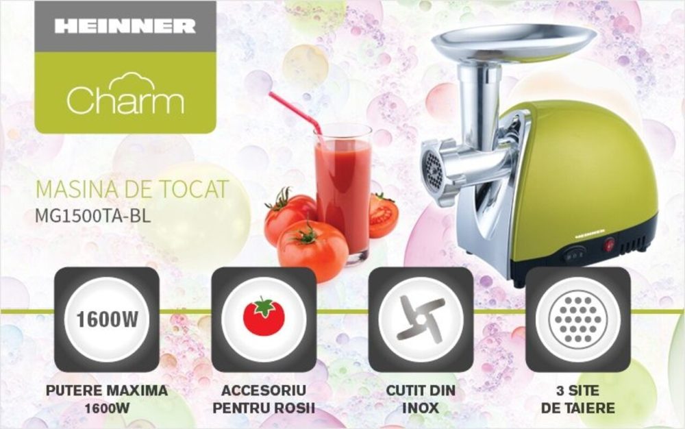 Masina de tocat Charm, Heinner, 1600 W, Verde – Un Partener de Nădejde în Bucătărie