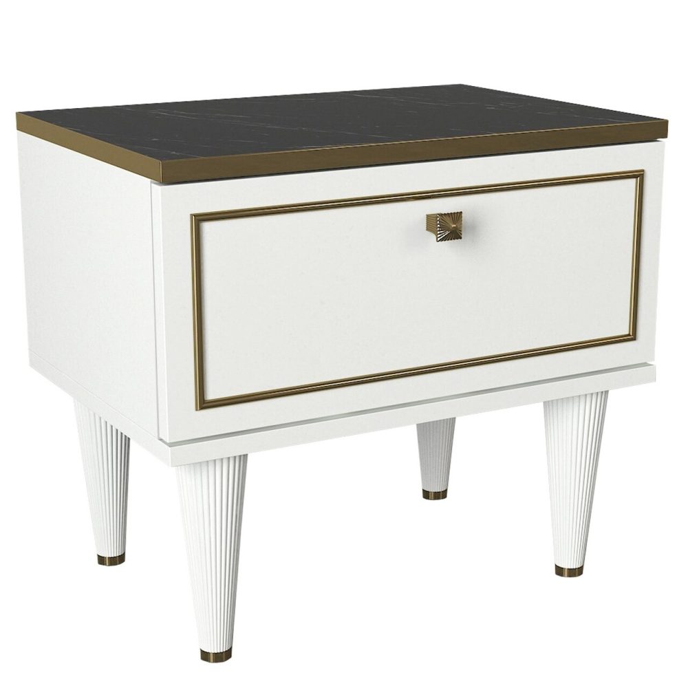 Noptiera Ravenna White Talon 50×34.8×47.2 cm alb auriniu negru din lemn