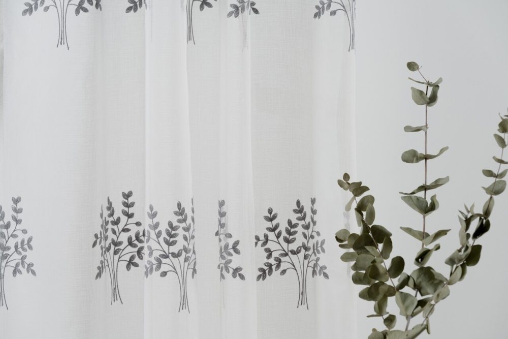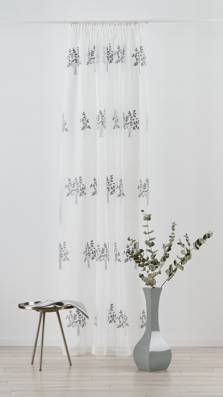 Perdea Mendola Elma 140×245 cm poliester gri model floral pentru interior