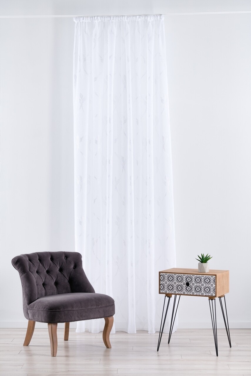 Perdea Mendola Interior Aveiro 500×260 cm Poliester Alb Design Clasic cu Insertii Metalizate