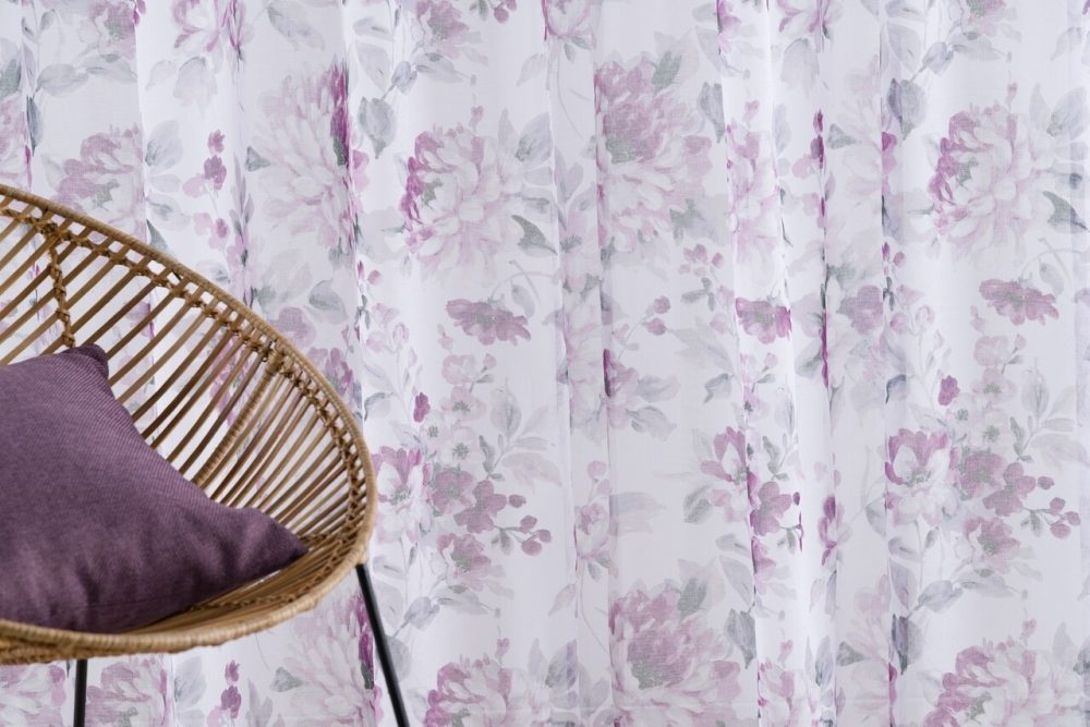 Perdea Mendola Salsa 300×260 cm poliester mov cu flori delicate pentru intimitate si eleganta in decorul interior