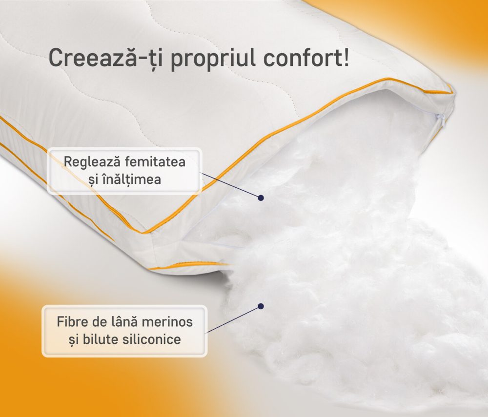 - Termoreglare excelentă: Utilizează perna atât iarna, cât și vara, menținând temperatura și umiditatea optime.