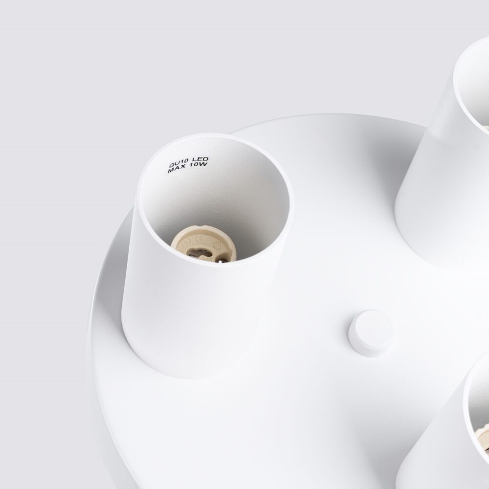 Sursa de lumina: GU10, 3x LED max 10W, ~230V, 50Hz, IP20, clasa de protectie I