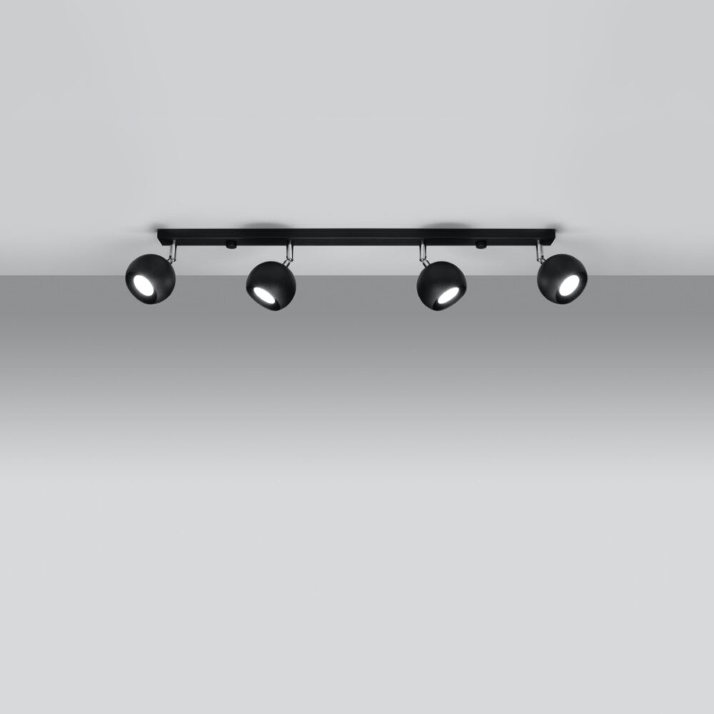 Plafonul modern Oculare spot este disponibil în cinci opțiuni cu un număr diferit de spoturi. Alegeți iluminarea liniară cu două, trei, patru sau șase puncte de lumină sau patru lămpi dispuse în plan pătrat.