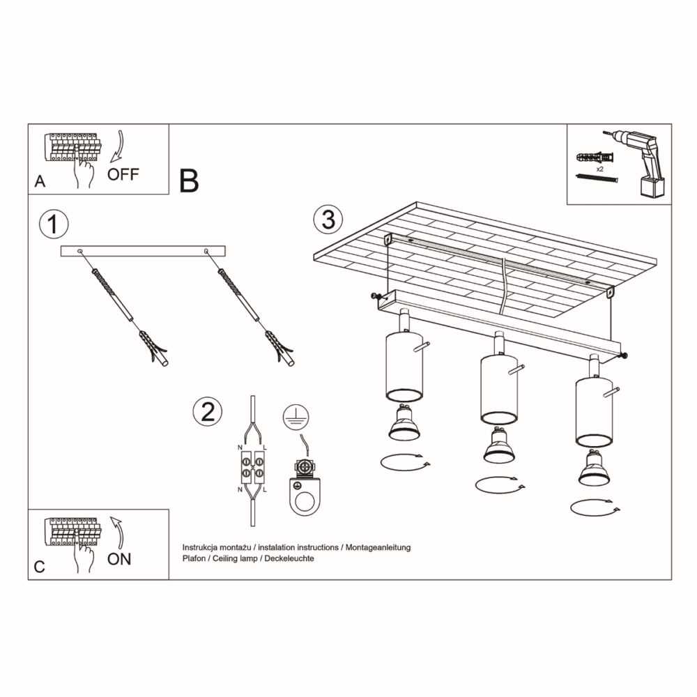 Puteți alege plafoniera cu 3 nuanțe în 4 versiuni clasice de culoare: alb, negru, gri și crom. Culorile universale se vor potrivi perfect în interioarele de orice stil: de la mansardă brută până la climate rustice calde.