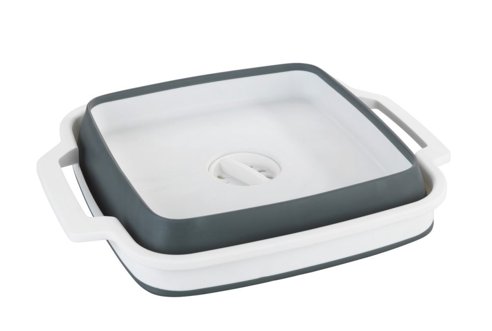 Recipient pliabil pentru spălarea vaselor Wenko Sira 39 x 32.5 x 18 cm plastic cu dop de scurgere și mânere pentru camping și uz casnic