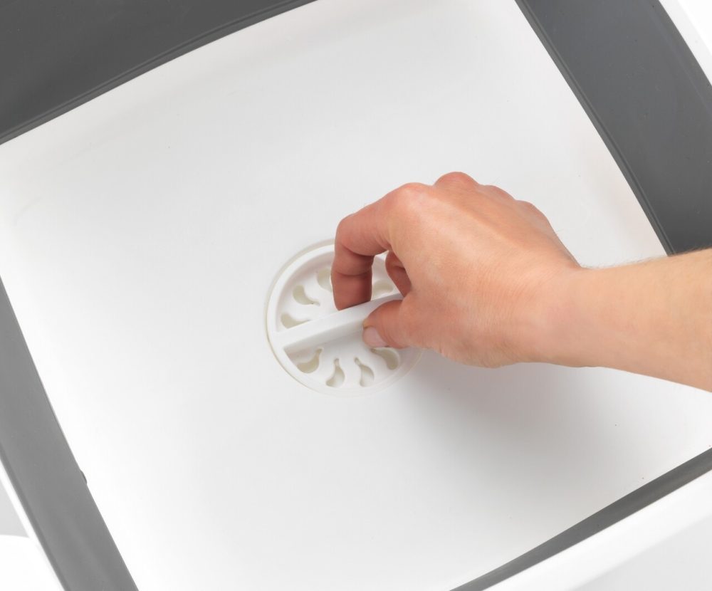 - Dop de scurgere – Echipat cu un dop de scurgere integrat, recipientul permite eliminarea rapidă a apei, facilitând procesul de curățare.