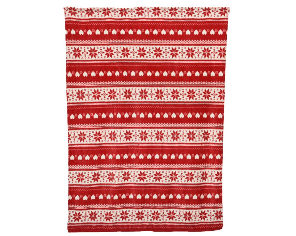 Sac pentru cadouri Snowflake and Heart 150×200 cm poliester rosu alb Decoris