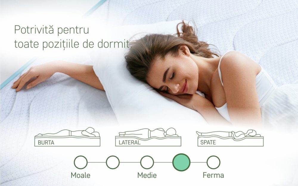 - Indicată pentru toate pozițiile de dormit: Fie că dormi pe spate, pe lateral sau pe stomac.