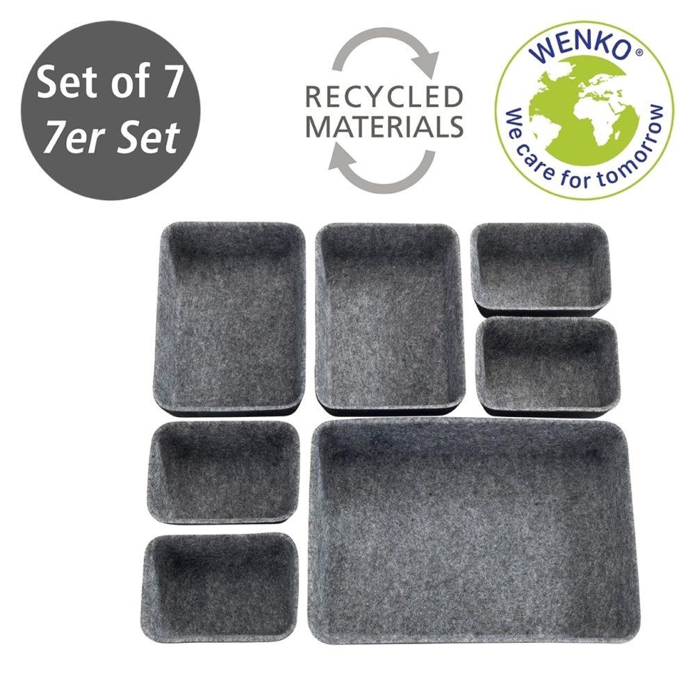 Set 7 Organizatoare Gri pentru Dulap Wenko din Poliester Reciclat 28.5 x 5 x 20 cm – Soluția Ideală pentru Ordine în Sertare