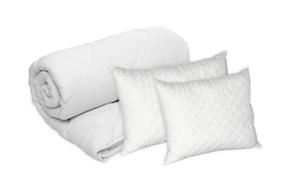 Set Alcam – Perne Microfibra 40×50 cm și 70×90 cm, Pilota Matlasată 140×200 cm din Microfibra cu Umplutură din Puf Siliconic pentru Dormitor