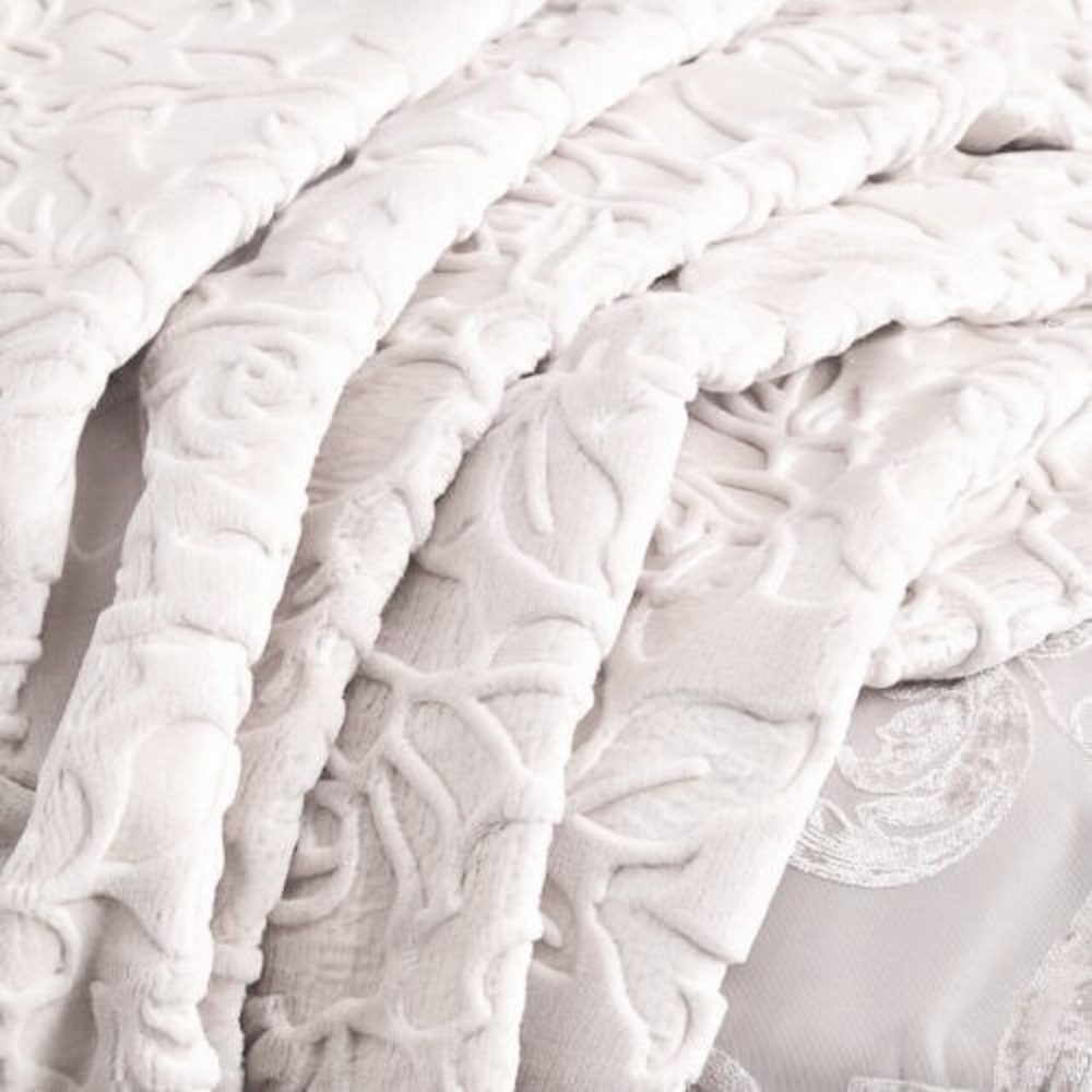 - 1 cuvertură cocolino cu dantelă fabricată din 100% fibre sintetice: 220 x 240 cm, perfectă pentru a adăuga confort și un aspect elegant.