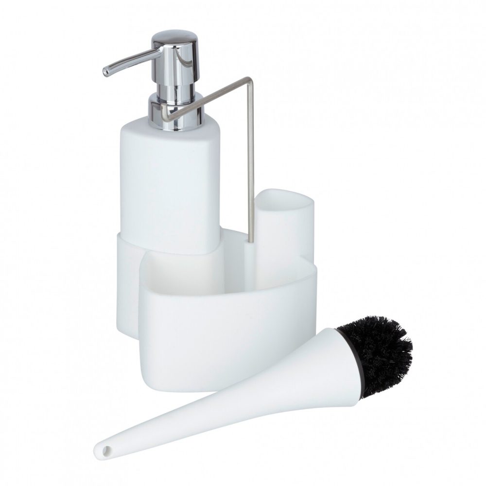 Set dispenser detergent lichid și perie de vase în suport, Wenko Empire