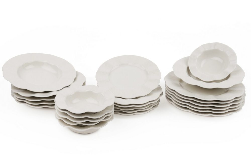 Set masa 24 piese portelan crem Kutahya Porselen, farfurii și boluri, compatibile cu mașina de spălat vase și cuptor cu microunde