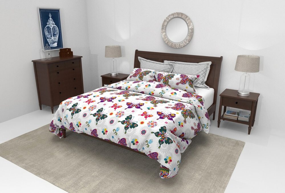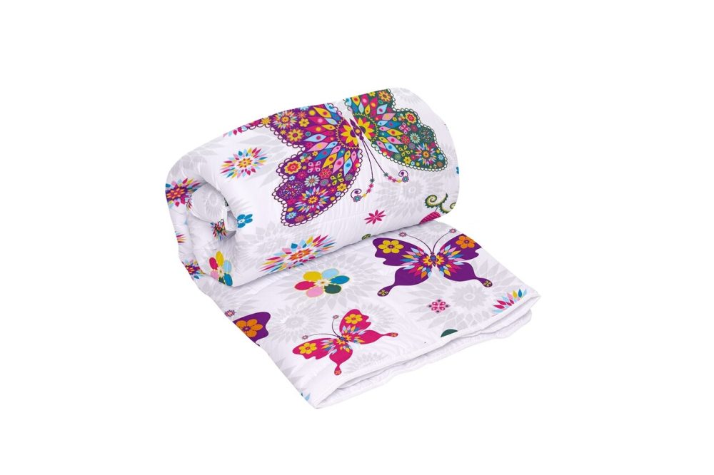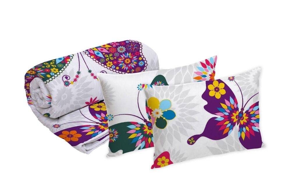 Set Papillons 2 perne microfibra 50×70 cm si pilota matlasata 180×200 cm, design colorat, umplutura fibra siliconica