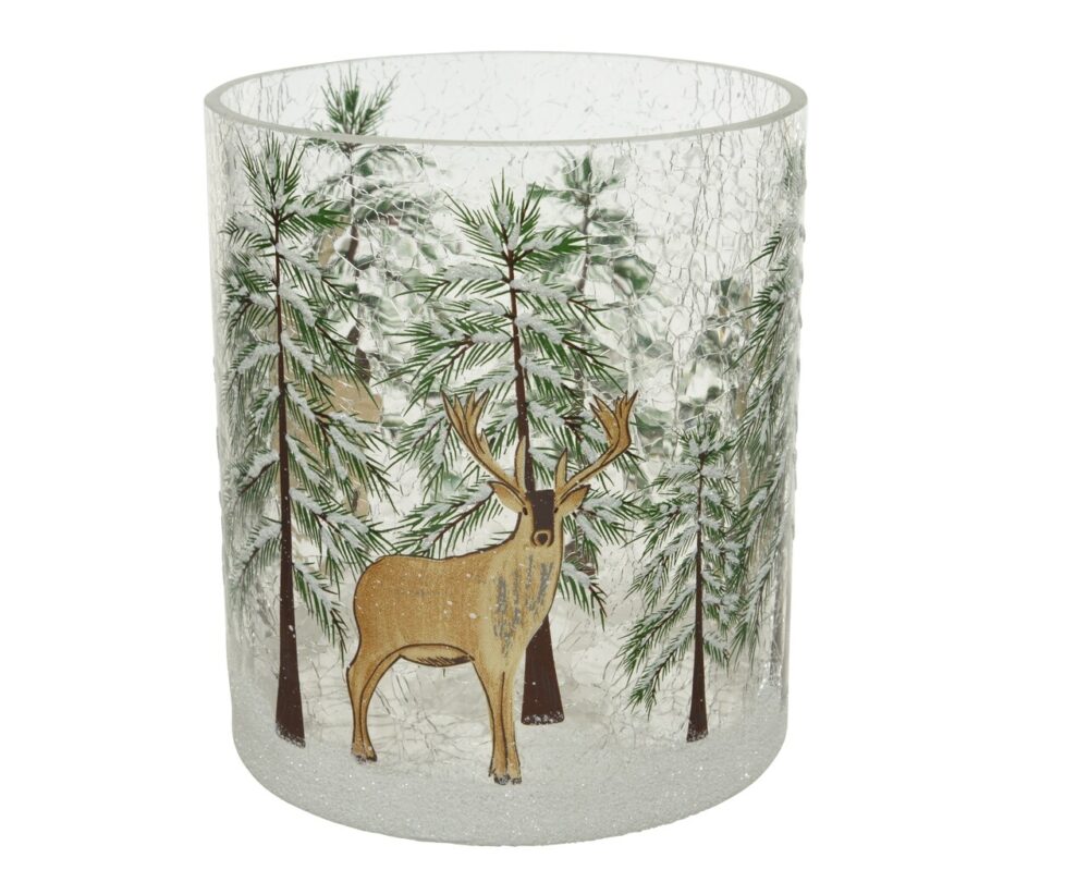 Suport pentru lumânare Trees and Deer Decoris din sticlă 9×10 cm decorativ pentru interior
