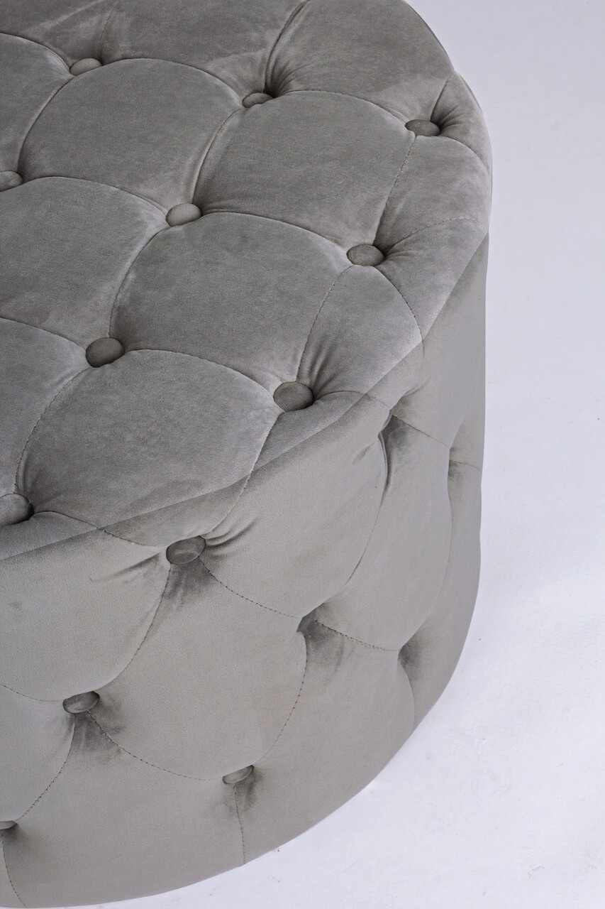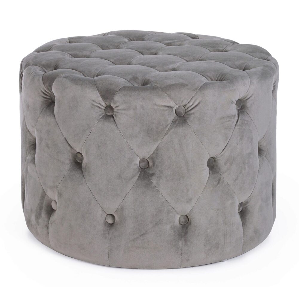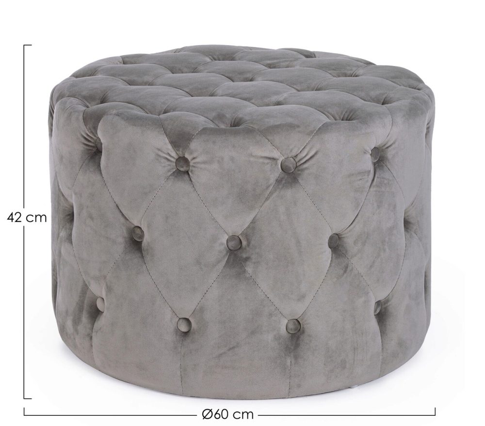 Taburet Lorella Bizzotto Ø60 cm x 42 cm lemn de pin MDF catifea gri elegant si confortabil pentru living si dormitor
