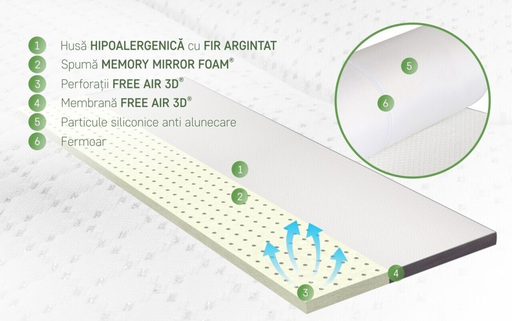 – spuma poliuretanica Memory Mirror Foam® cu perforatii Free Air H = 8 cm